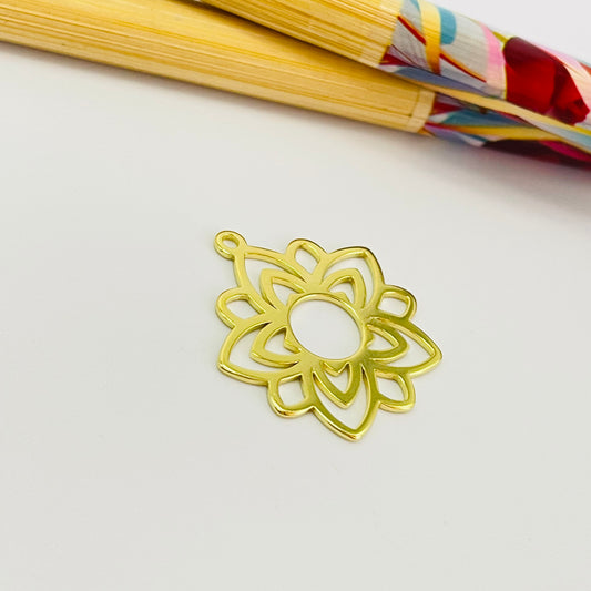 FO1102 Colgante Tipo Mandala Flor Calada diá. 20 mm más argollita espesor 1 mm Figura Baño Oro