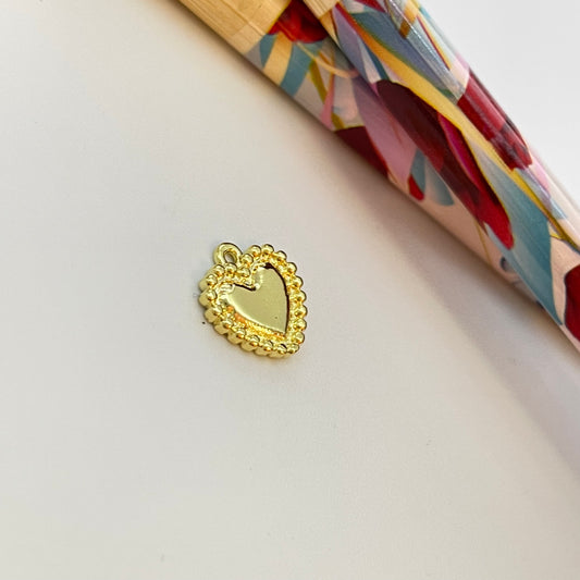 FO1019 Colgante Corazon con mini bolitas estampadas en el borde10 x 8 mm Figura Baño Oro