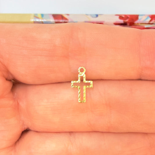 FO1264 Colgante Mini Cruz Calada diamantada 9 x 6 mm más argollita Espesor 0.3 mm Figura Baño Oro