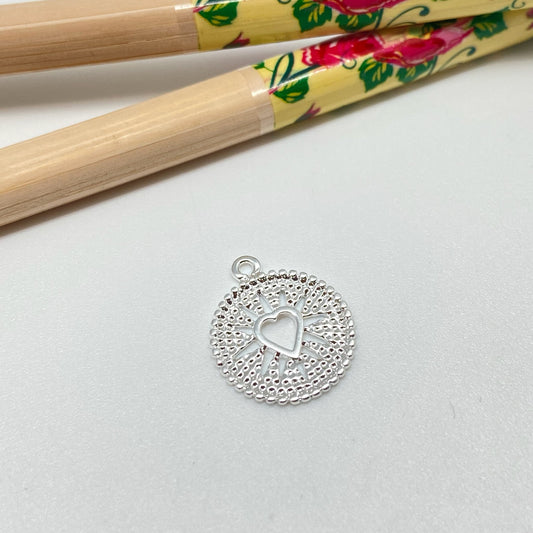 FP934 Colgante medalla Corazón con rayos calados Fondo y Borde Rutilados diá. 15 mm más argollita Figura Baño Plata