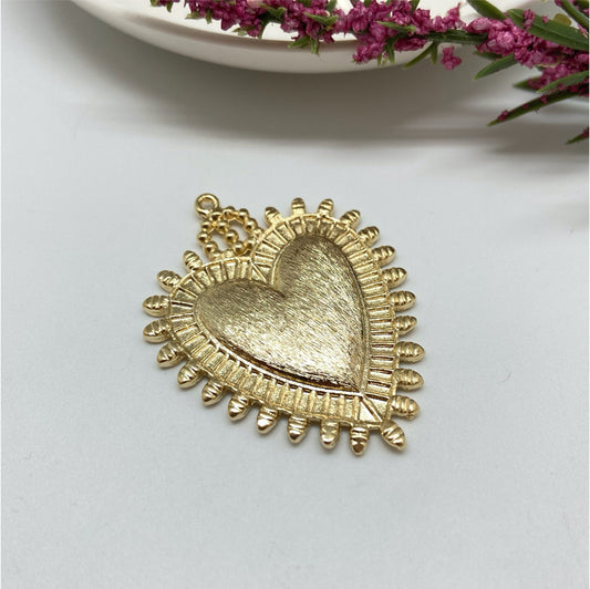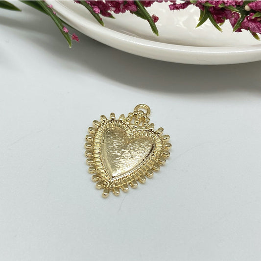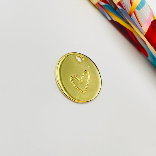 FO901 Colgante Redondo con Corazón estampado 15 mm Figura Baño Oro