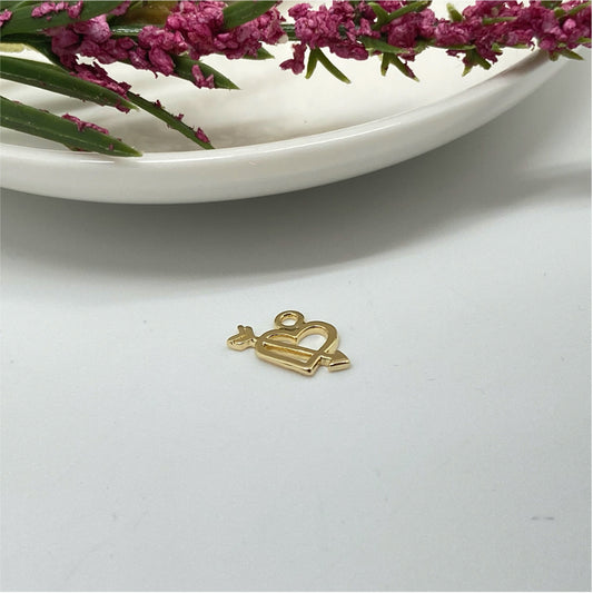 FO921 Corazón Flecha Cupido 7x10 mm más argollita Figura Baño Oro