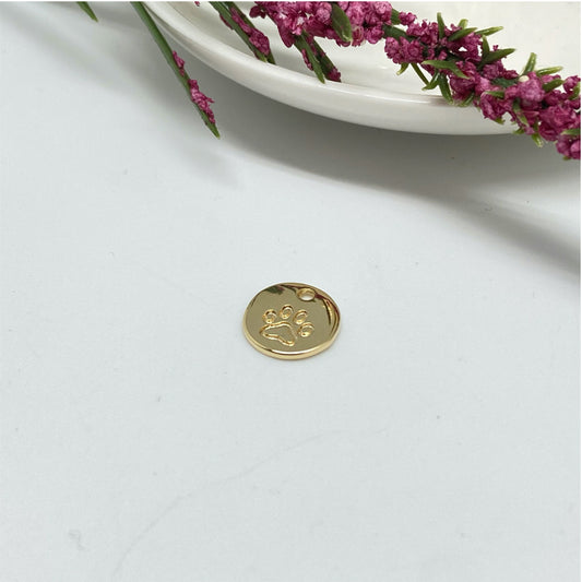 FO923 Medalla Patita de Perro estampada diá. 12 mm Figura Baño Oro