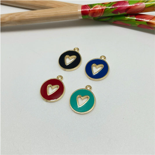 FO927 Colgante Medalla Corazón Calado con Resina de Color 13 mm más argollita Figura Baño Oro