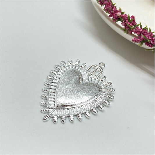 FP920 Medalla corazón circones Diá. 7 mm más argollita Figura Baño Plata