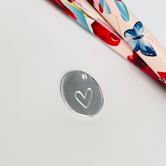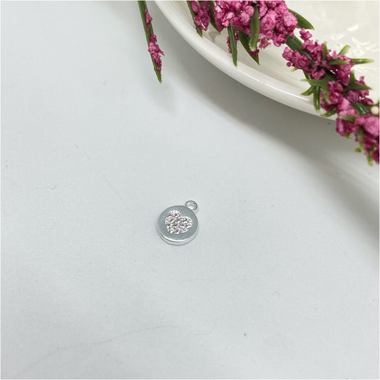 FP901 Colgante Redondo con Corazón estampado 15 mm Figura Baño Plata