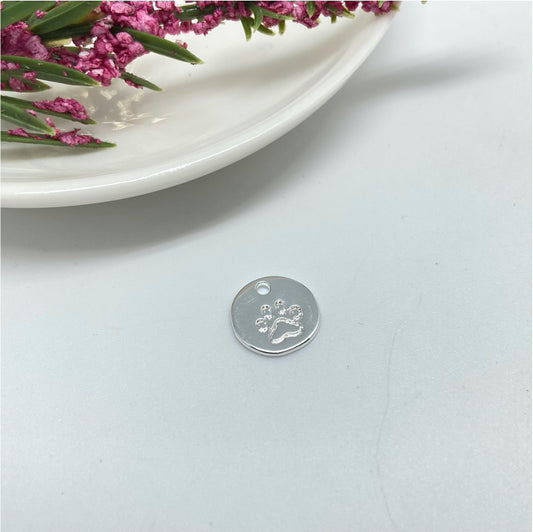 FP923 Medalla Patita de Perro estampada diá. 12 mm Figura Baño Plata