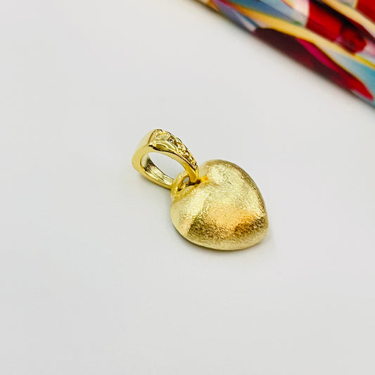 FO902 Colgante Corazón Gordito Lijado con Balier con 1 Circón largo total 16 mm x 11 mm Figura Baño Oro