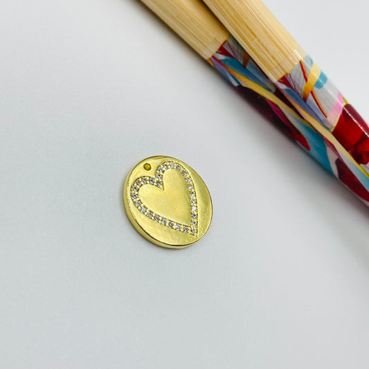FO905 Colgante Redondo Corazón con Circones 15 mm Figura Baño Oro