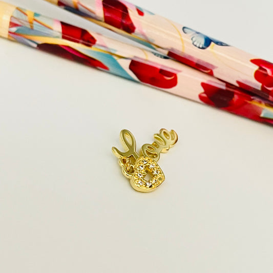 FO909 Colgante Love y Corazón calado con circones cristal 10x20 mm Figura Baño Oro