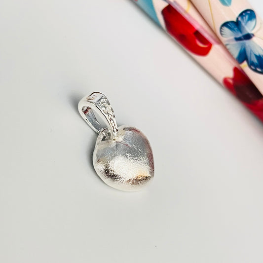 FP902 Colgante Corazón Gordito Lijado con Balier con 1 Circón largo total 16 mm x 11 mm Figura Baño Plata