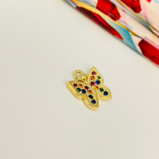 FO915 Colgante Mariposa con circones multicolor 10x10 mm Figura Baño Oro
