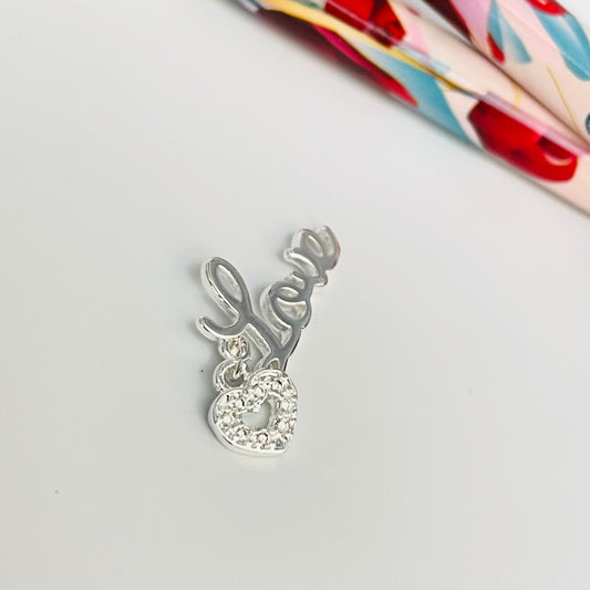 FP909 Colgante Love y Corazón calado con circones cristal 10x20 mm Figura Baño Plata
