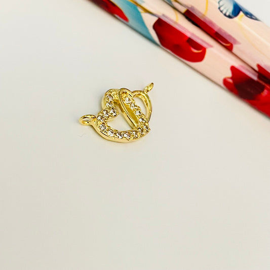 FO917 Colgante Corazones Entrelazados 1 con circones y otro liso con 2 argollitas 11x15 mm Figura Baño Oro
