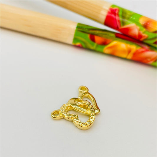 FO844 Colgante Corazones Entrelazados 10x15 mm incluye argollitas Figura Baño Oro