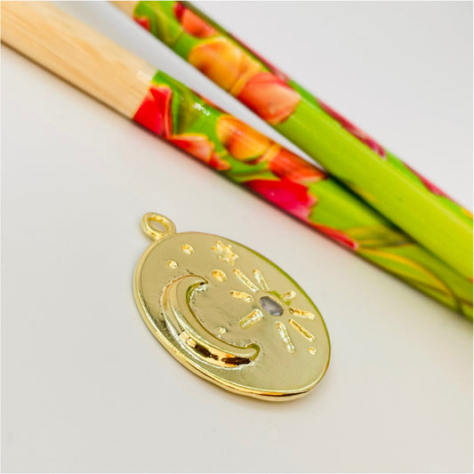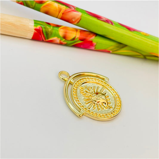 FO854 Colgante medalla Luna y Sol con 1 circón 25 mm más argollita Figura Baño Oro