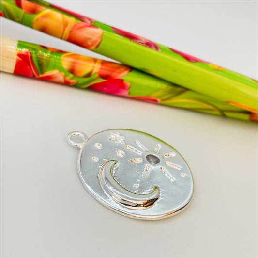 FP854 Colgante medalla Luna y Sol con 1 circón 25 mm más argollita Figura Baño Plata