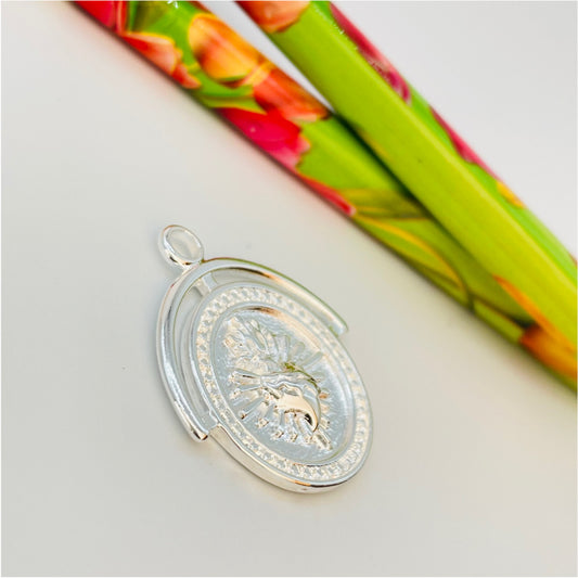 FP857 Colgante Medalla Sagrado Corazón con borde superior calado 22x25 mm más argollita Figura Baño Plata