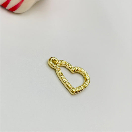 FO840 Colgante Corazón Calado Mediano Borde con Puntitos 15x12 mm incluye argollita Figura Baño Oro