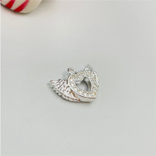 FP836 Colgante Corazón Alitas 10x16 mm incluye argollita Figura Baño Plata