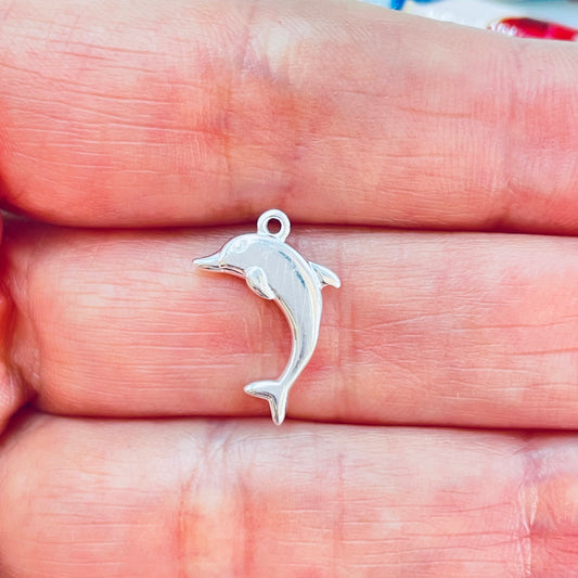 FP1231 Colgante Delfín 14 x 12 mm más argollita Espesor 1.2 mm Figura Baño Plata