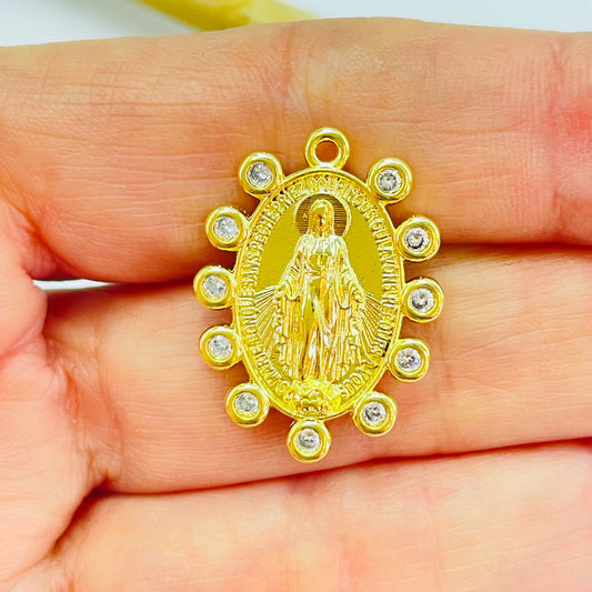 FO1224 Colgante Virgen de los Rayos Ovalada Circones en Borde 25 x 19 mm Espesor 2.1 mm Figura Baño Oro