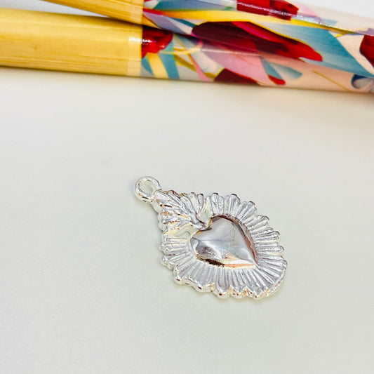 FP676 Colgante Ovalado Irregular Corazón 15 x 13 mm Figura Baño Plata