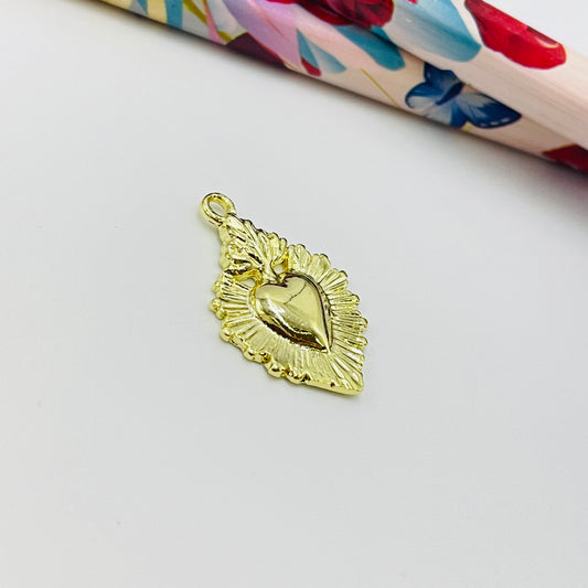FO676 Colgante Ovalado Irregular Corazón 15 x 13 mm Figura Baño Oro
