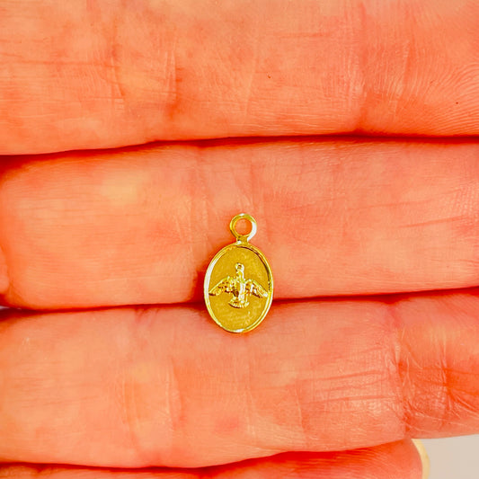 FO1210 Mini Colgante Ovalado San Expedito 9 x 7 mm más Argollita Espesor 1 mm Figura Baño Oro