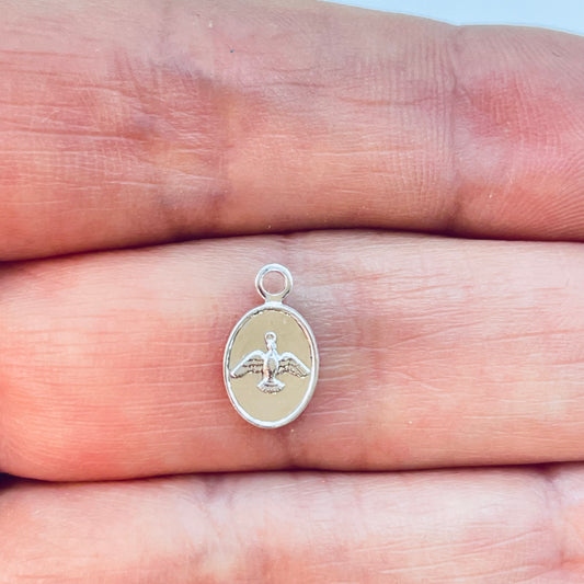 FP1211 Mini Colgante Ovalado Espíritu Santo 9 x 7 mm más Argollita Espesor 1 mm Figura Baño Plata