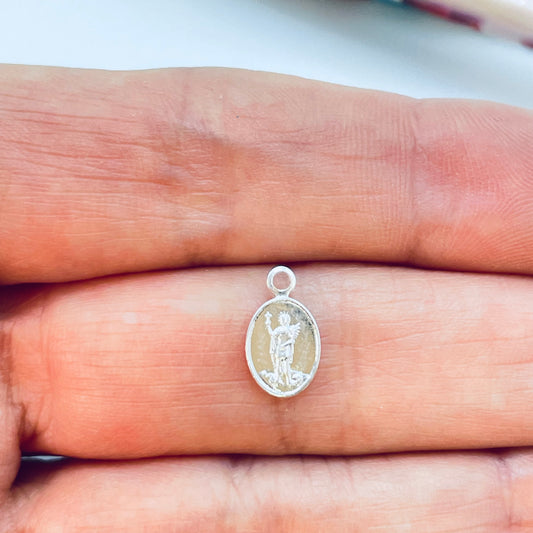 FP1210 Mini Colgante Ovalado San Expedito 9 x 7 mm más Argollita Espesor 1 mm Figura Baño Plata
