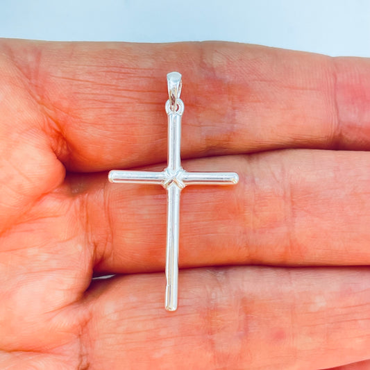 FP1217 Colgante Cruz 31 x 19 mm más valier de 6 mm Espesor Ancho 2 mm Espesor 1.5 mm Figura Baño Plata