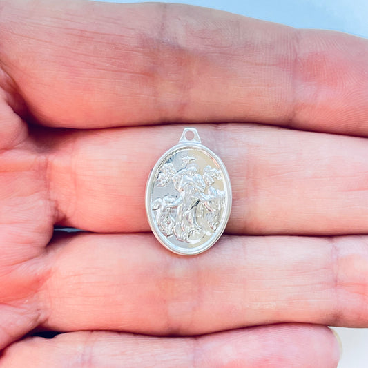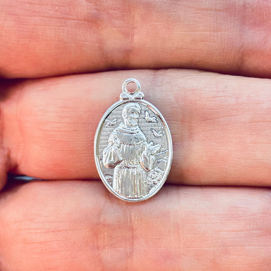 FP1213 Colgante Medalla Ovalada San Francisco de Asís 15 x 11 mm más argollita espesor 1.2 mm Figura Baño Plata