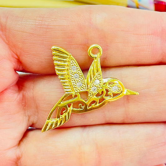 FO1218 Colgante Colibrí Calado Circones 25 x 25 mm Espesor 1.1 mm Figura Baño Oro