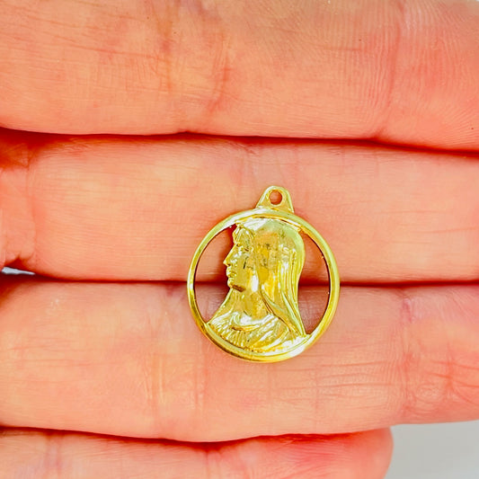 FO1207 Colgante Medalla calada Virgen Niña Diá. 15 mm mas argollita Espesor 1 mm Figura Baño Oro