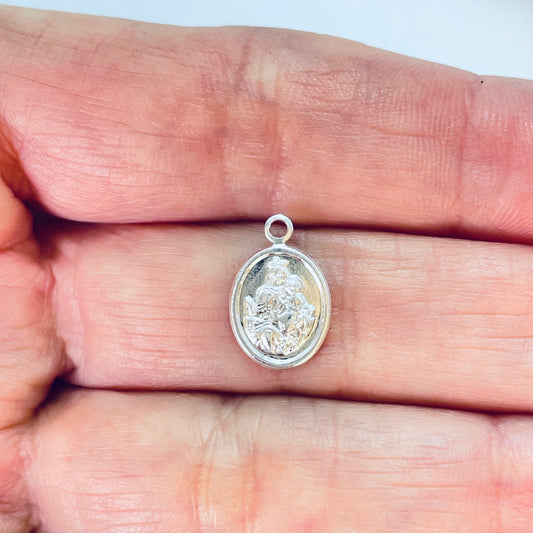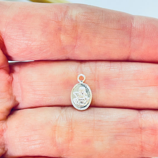FP1209 Mini Colgante Ovalado Angel de la Guarda 9 x 7 mm más Argollita Espesor 1 mm Figura Baño Plata