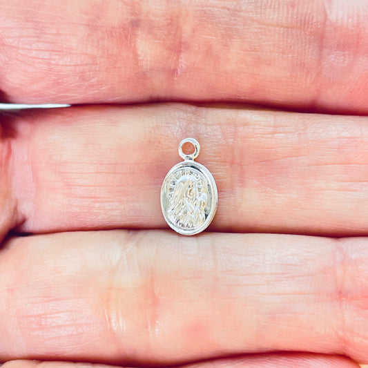 FP1206 Mini Medalla Ovalada de 3 Argollas para Rosario Virgen Milagrosa 8 x 6 mm Espesor 1 mm Figura Baño Plata