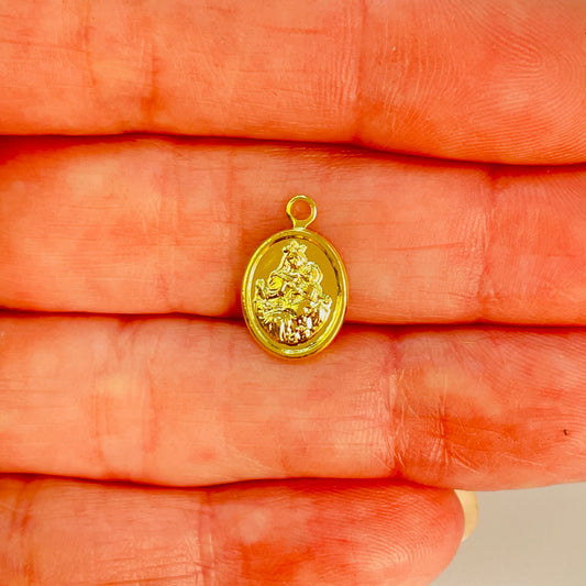 FO1199 Conector Arcángel San Miguel Doble Faz Diá. 9 mm mas argollitas Espesor 1 mm Figura Baño Oro