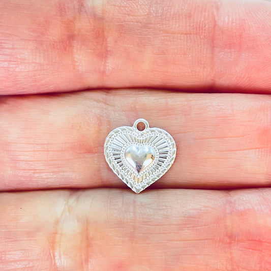 FP1203 Colgante Sagrado Corazón Borde Trenzado 10 x 10 mm más argollita Espesor 1 mm Figura Baño Plata