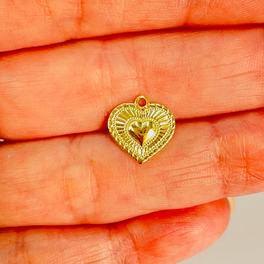 FO1203 Colgante Sagrado Corazón Borde Trenzado 10 x 10 mm más argollita Espesor 1 mm Figura Baño Oro