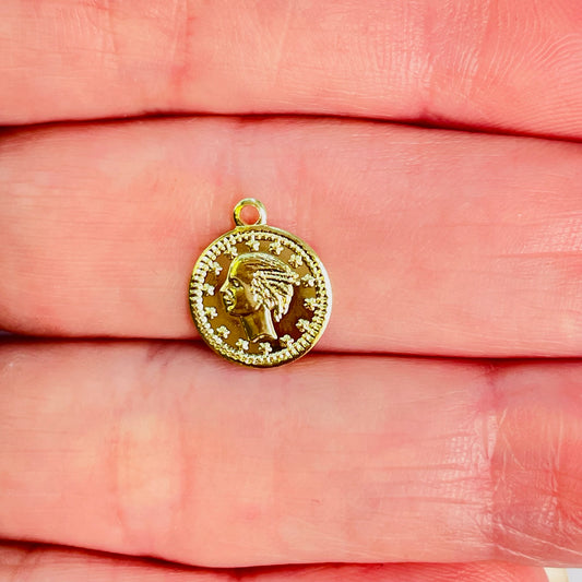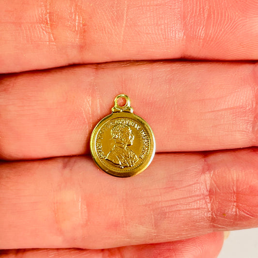 FO1194 Colgante Mini Moneda Lira Doble Faz Diá. 8 mm más argollita Espesor 1 mm Figura Baño Oro