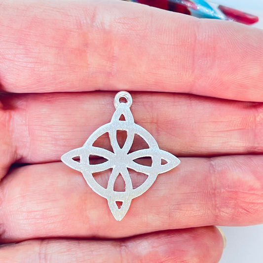 FP1185 Colgante Nudo de Bruja Calado Lijado 25 x 25 mm Espesor 1.2 mm Figura Baño Plata