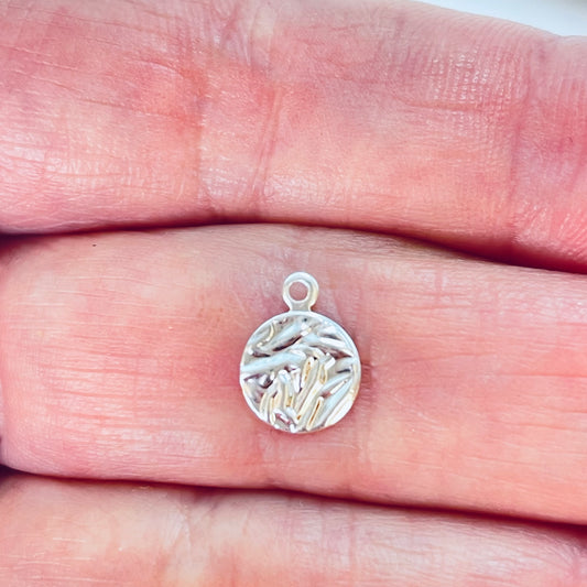 FP1189 Colgante Mini Redondo Texturado tipo Orgánico Diá. 7 mm más argollita Espesor 0.8 mm Figura Baño Plata