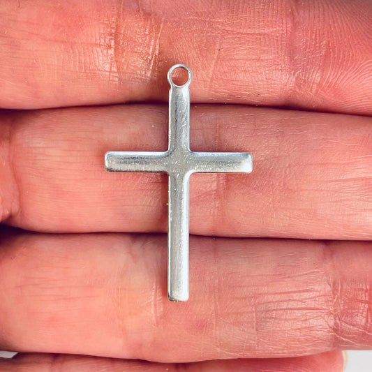 FP1192 Colgante Cruz Lisa Pequeño Relieve 25 x 17 mm más argollita Espesor 1.1 mm Figura Baño Plata