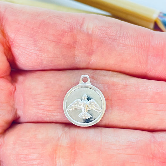 FP1188 Colgante Medalla Redonda Espíritu Santo Diá. 12 mm más argollita Espesor 1 mm Figura Baño Plata