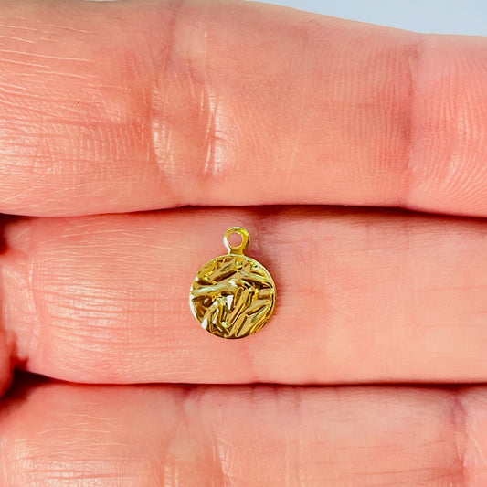 FO1189 Colgante Mini Redondo Texturado tipo Orgánico Diá. 7 mm más argollita Espesor 0.8 mm Figura Baño Oro