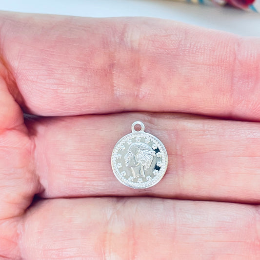 FP1194 Colgante Mini Moneda Lira Doble Faz Diá. 8 mm más argollita Espesor 1 mm Figura Baño Plata