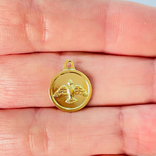 FO1188 Colgante Medalla Redonda Espíritu Santo Diá. 12 mm más argollita Espesor 1 mm Figura Baño Oro