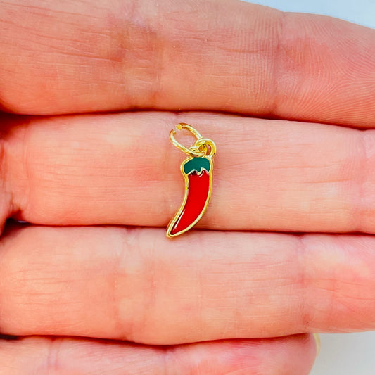 FO1176 Colgante Mini Ají Resina de Color 15 x 4 mm Espesor 2.1 Figura Baño Oro