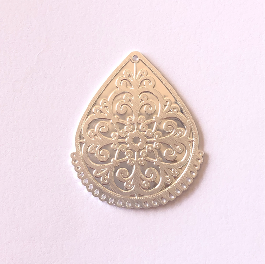 FP522 Gota Floral Relieve Borde 23 Argollas 25 x 34 mm Figura Baño Plata